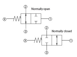 3-Way, 2-Position, Poppet |  | | Commonly used for control of single-acting cylinder, clutch or brake, circuit selector valve, or pilot for a large directional spool valve where low leakage is a must. |