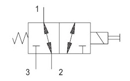 Highlights - Allow free flow from nose (1) to side (2) and block flow at port (3) when de-energized. When energized, (2) and (3) are connected and (1) is blocked